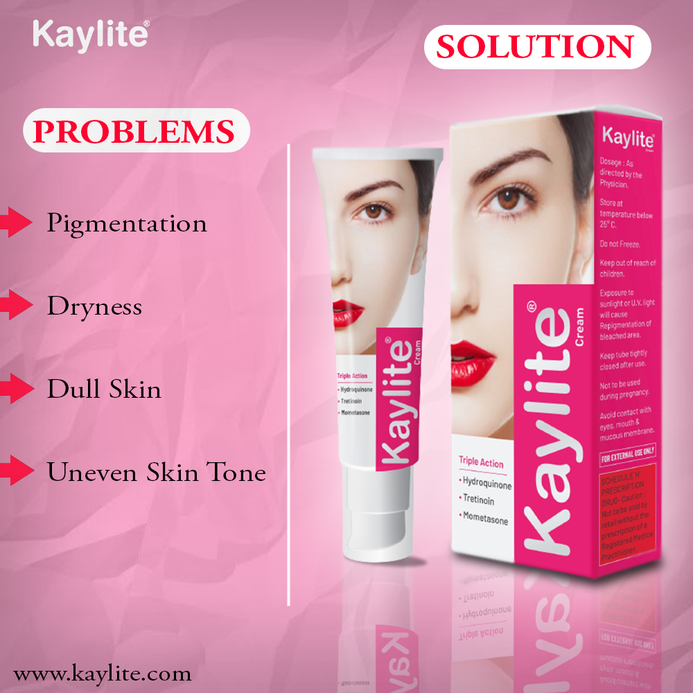 Kaylite cream is a medication designed to treat melasma, a common skin condition characterized by dark patches. This powerful cream combines hydroquinone, mometasone, and tretinoinin a unique triple-action formula to effectively lighten the skin and reduce discoloration and hyperpigmentation. Available in two variants of 15gm and 30 gm.